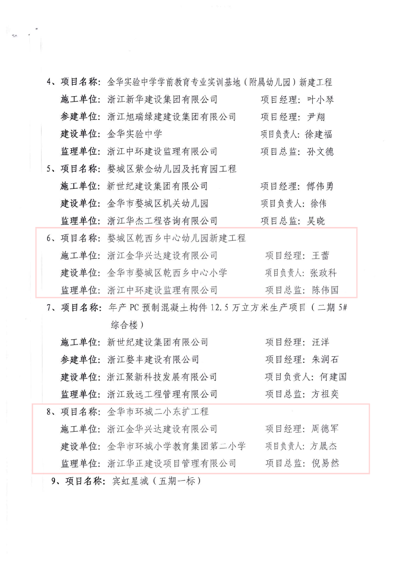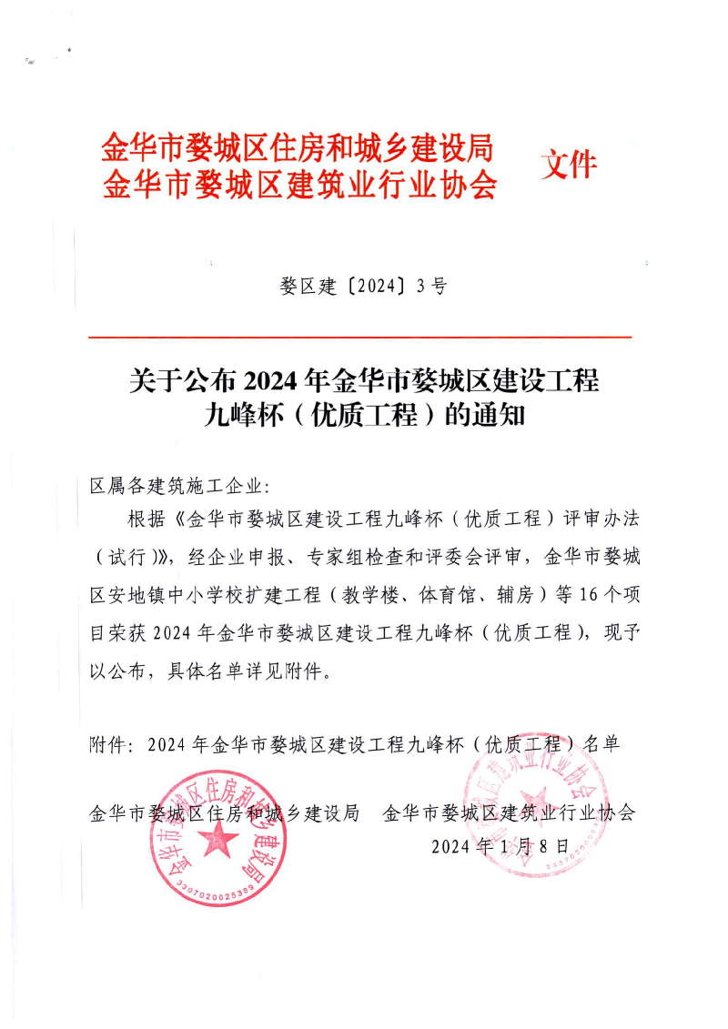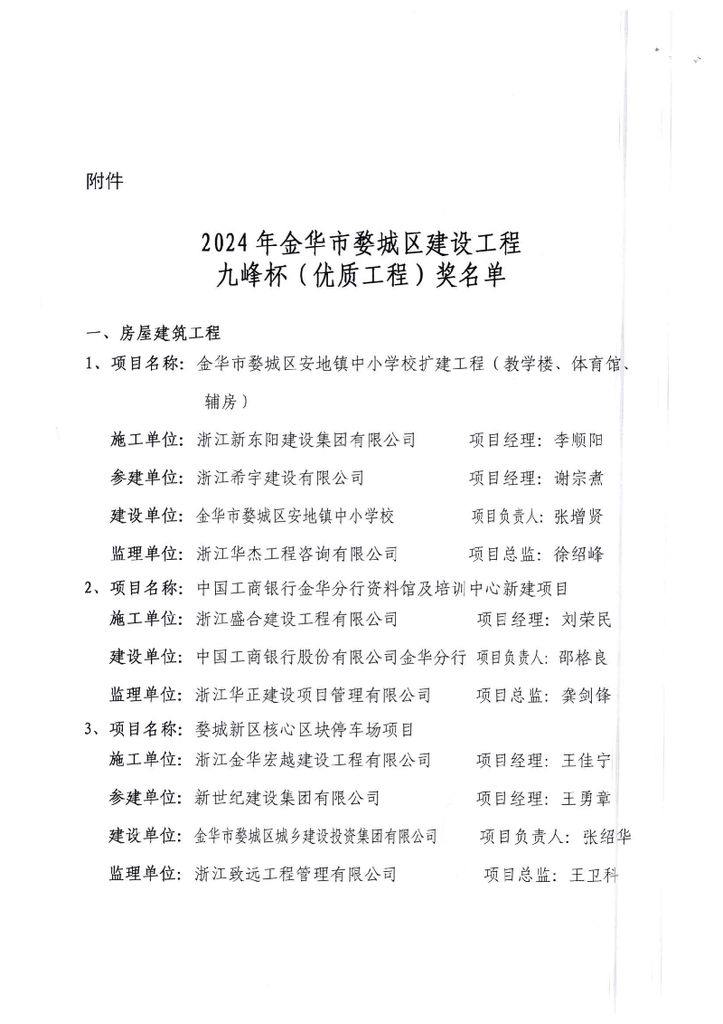 2024年金華市婺城區(qū)建設(shè)工程九峰杯(優(yōu)質(zhì)工程)