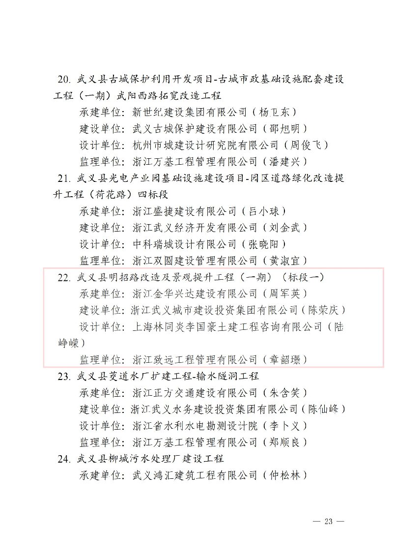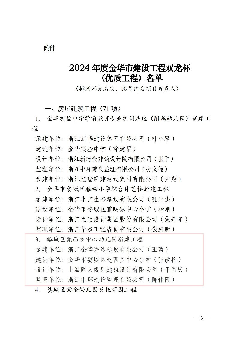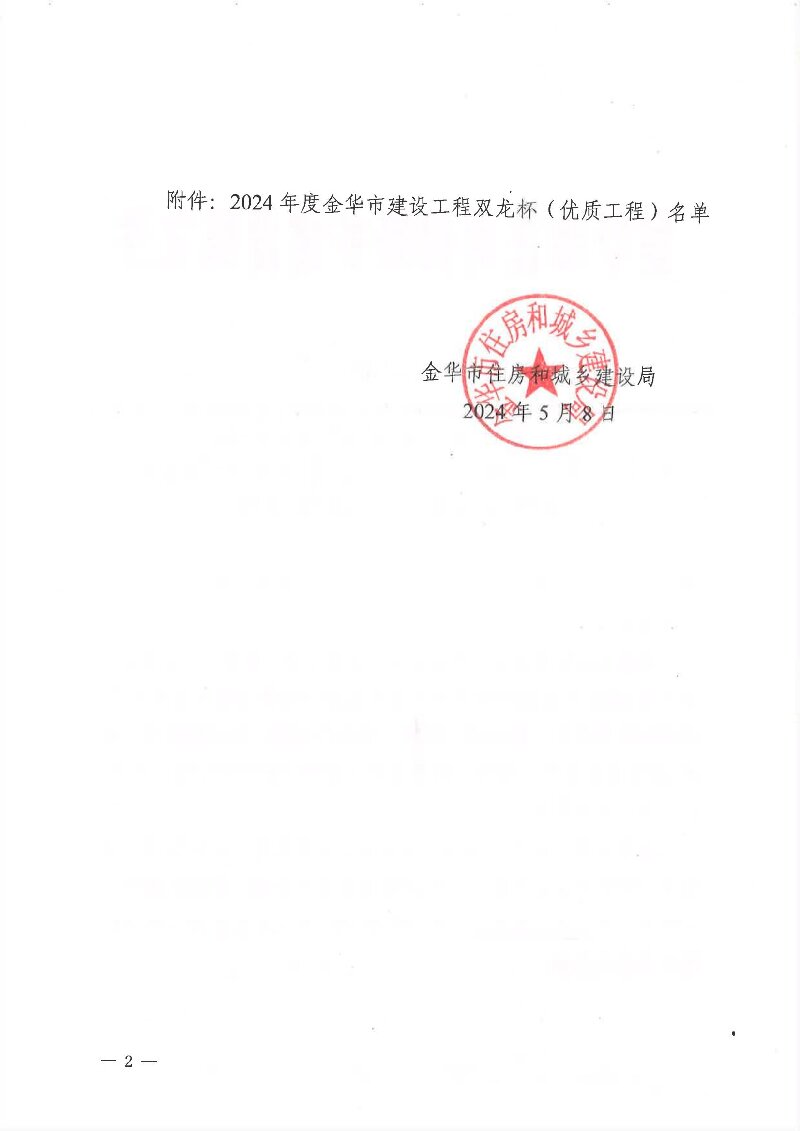 2024年度金華市建設(shè)工程雙龍杯(優(yōu)質(zhì)工程)